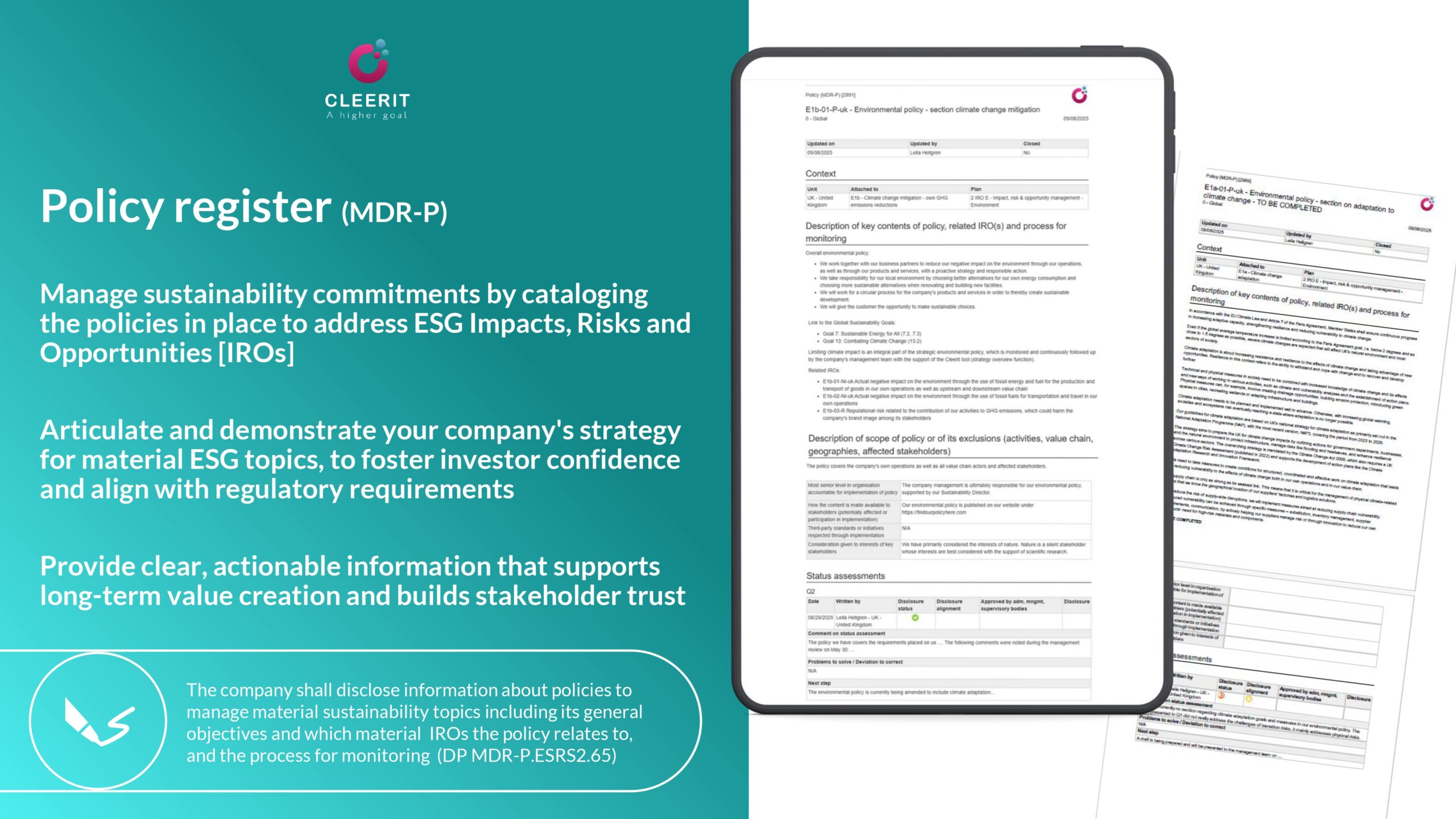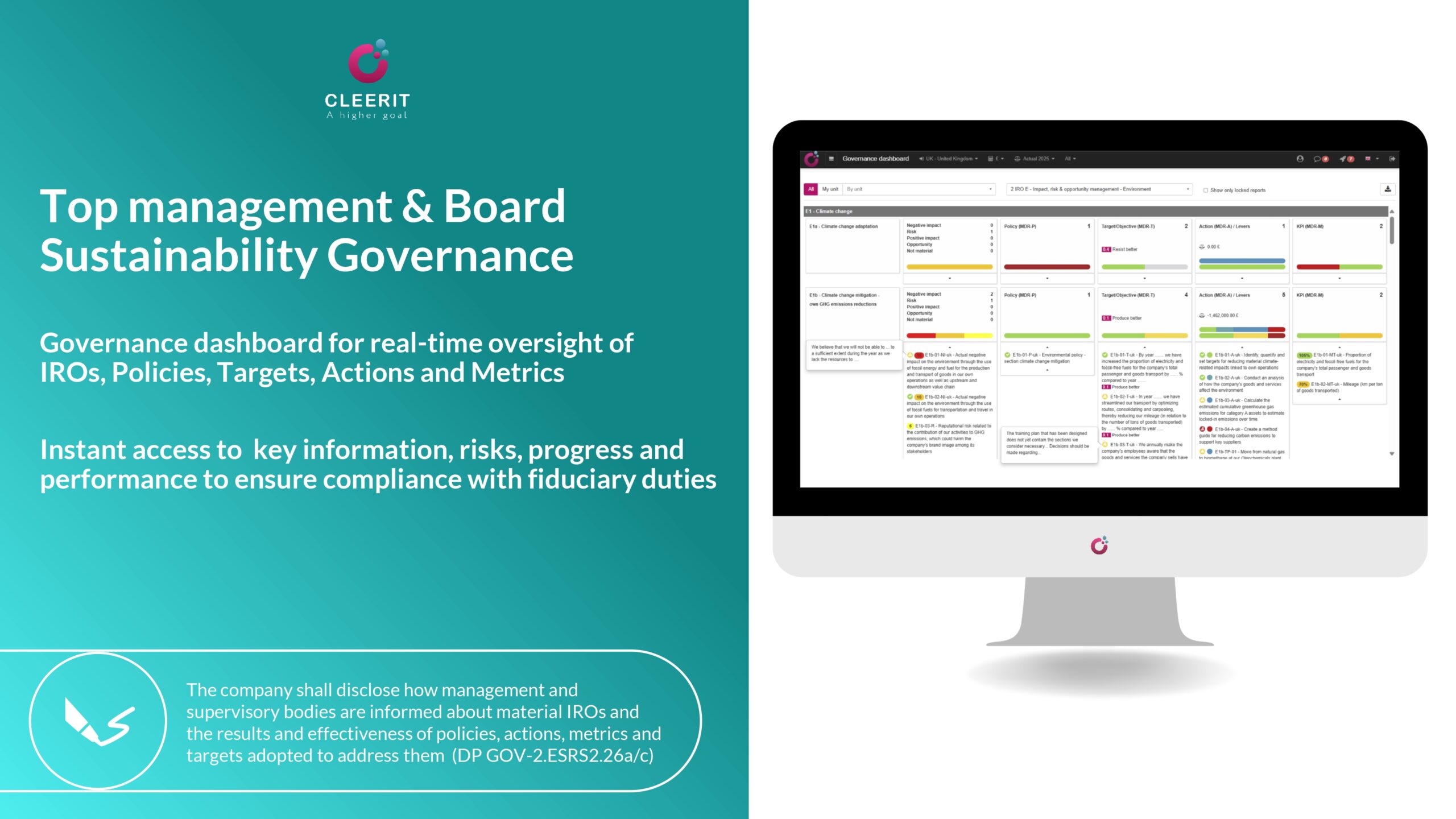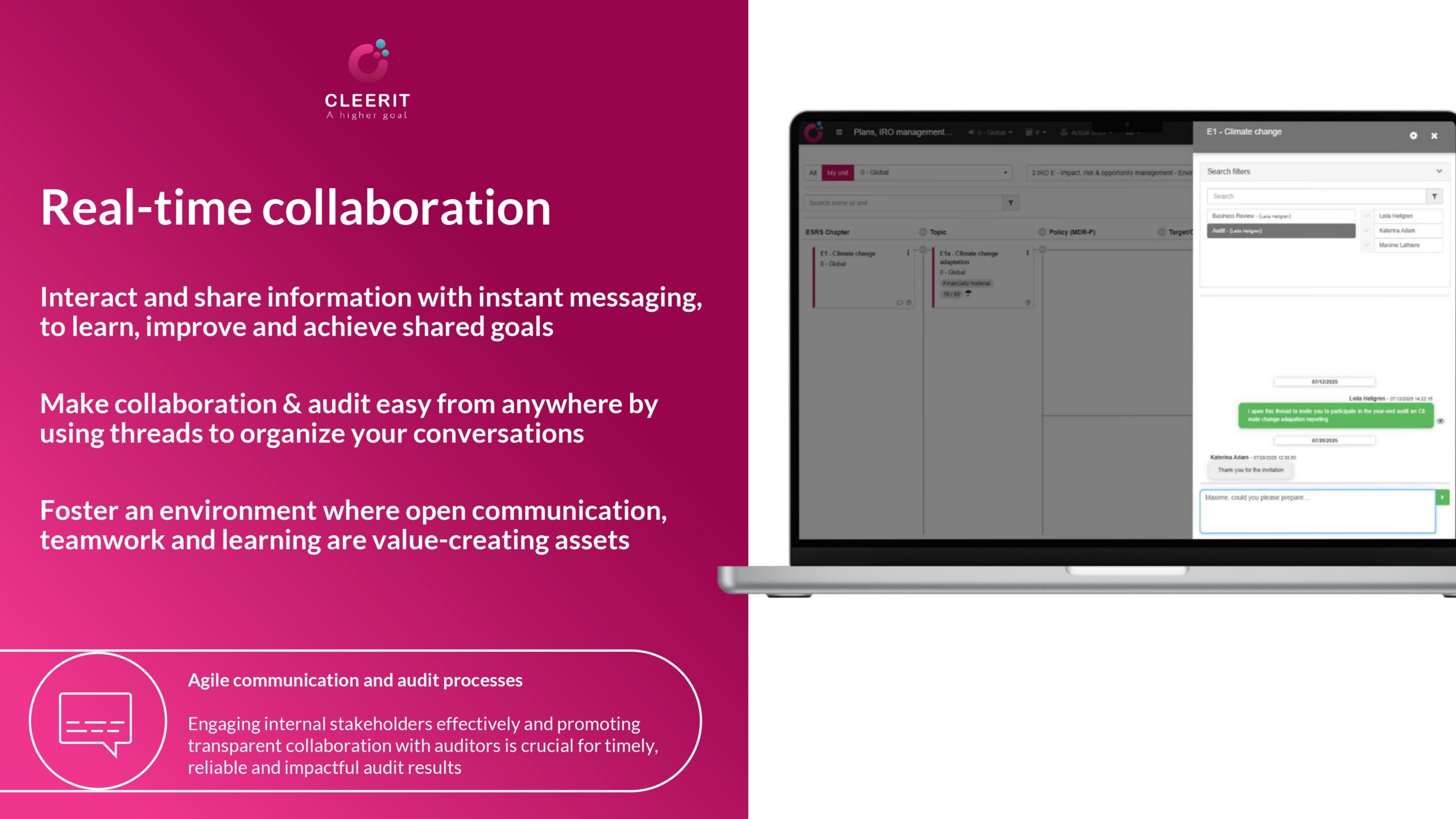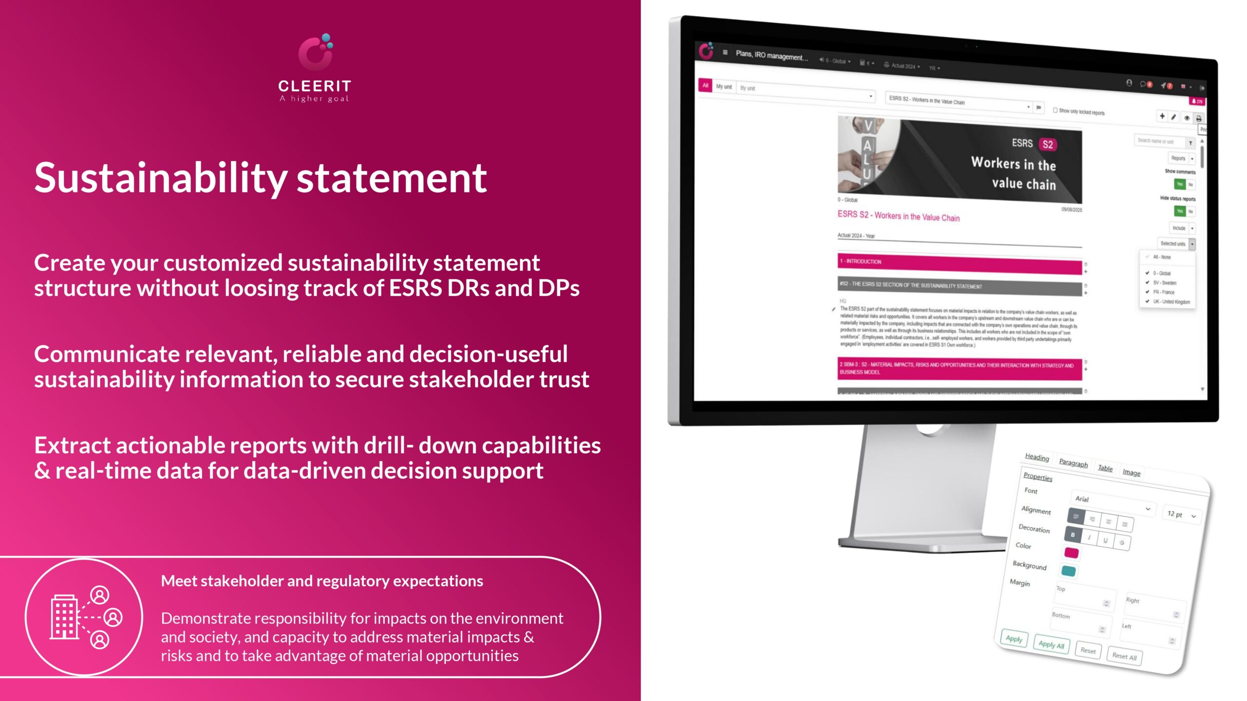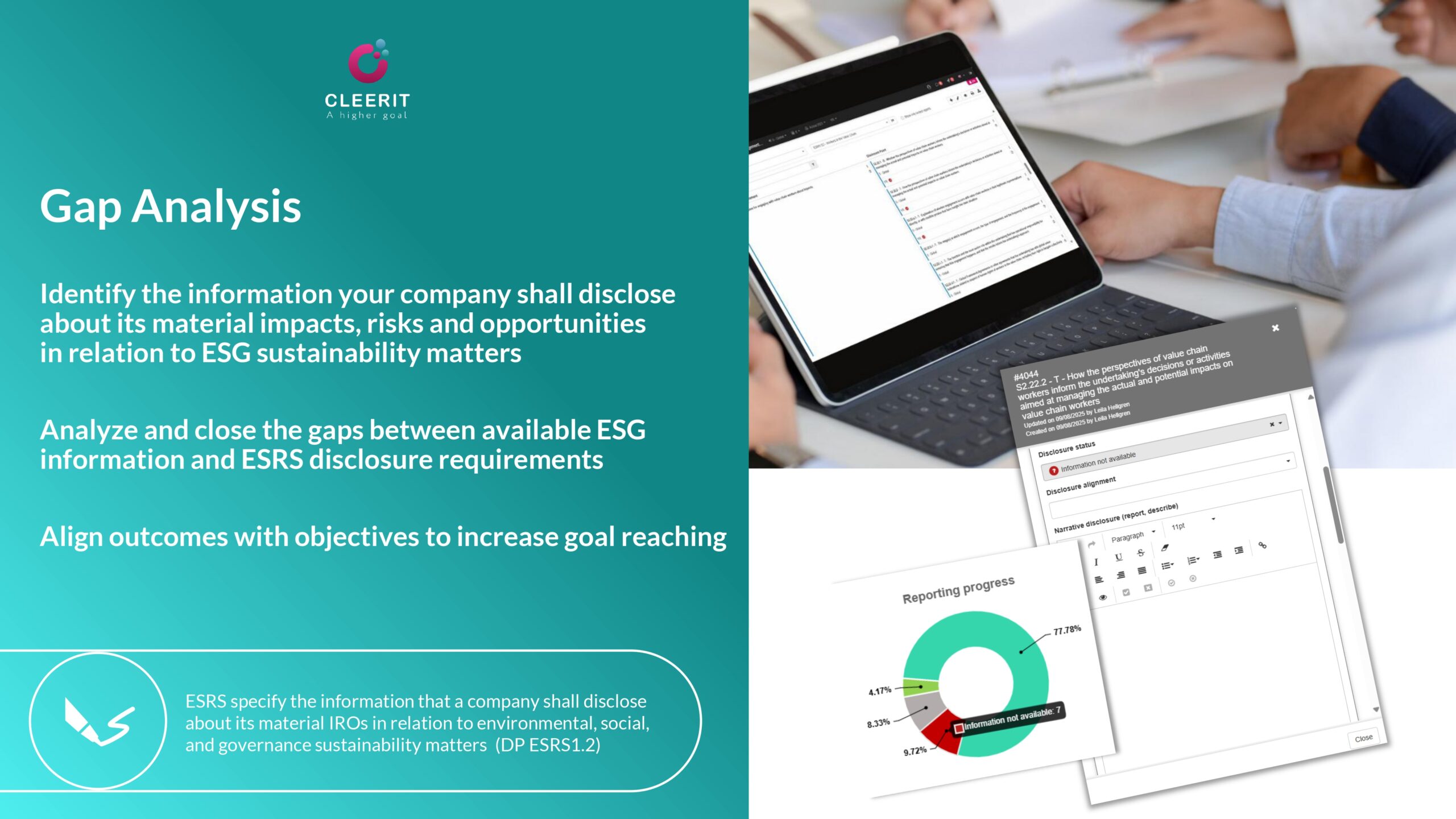 Cleerit ESG gets you ESRS-compliant & audit-ready in no time
