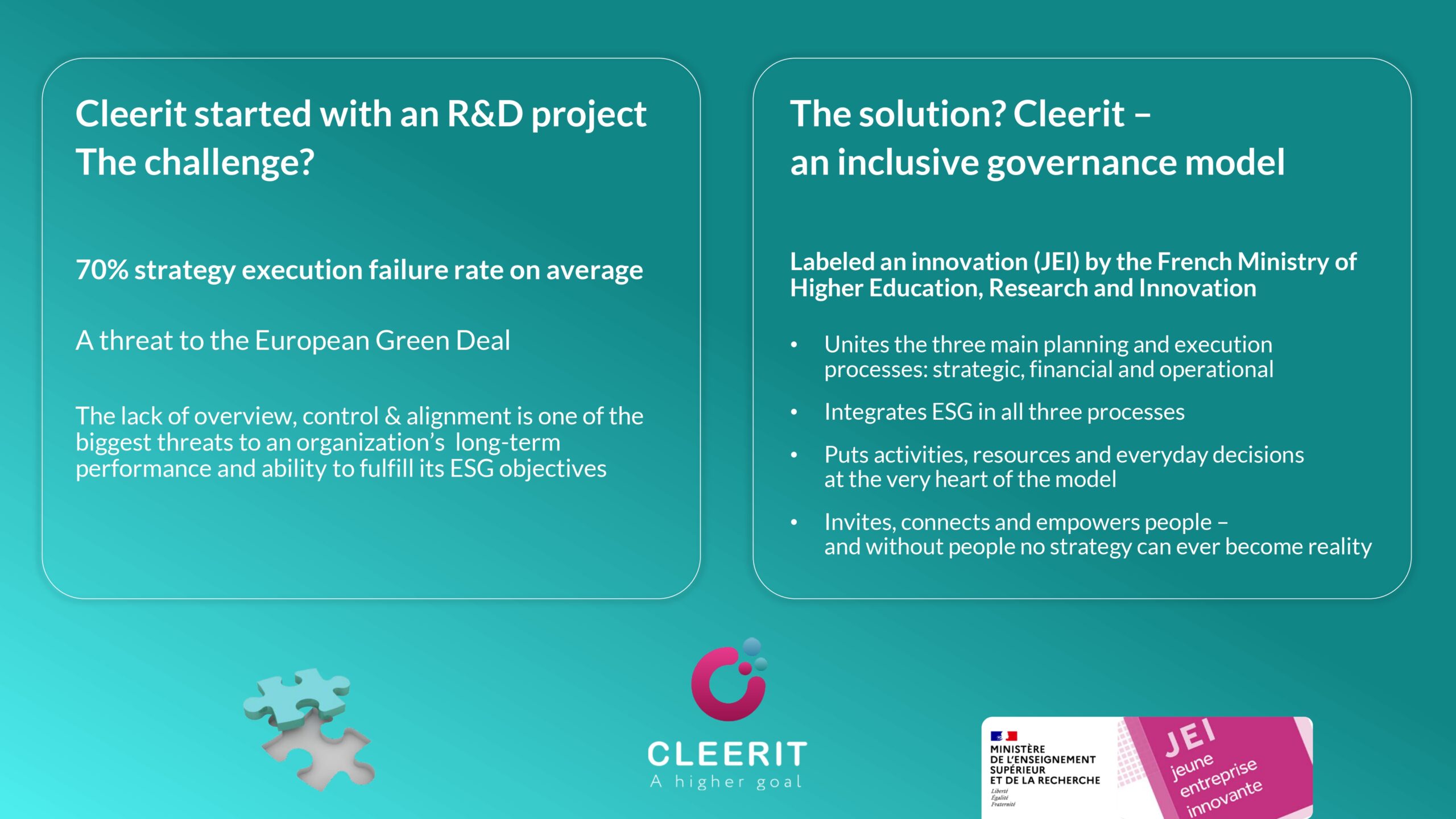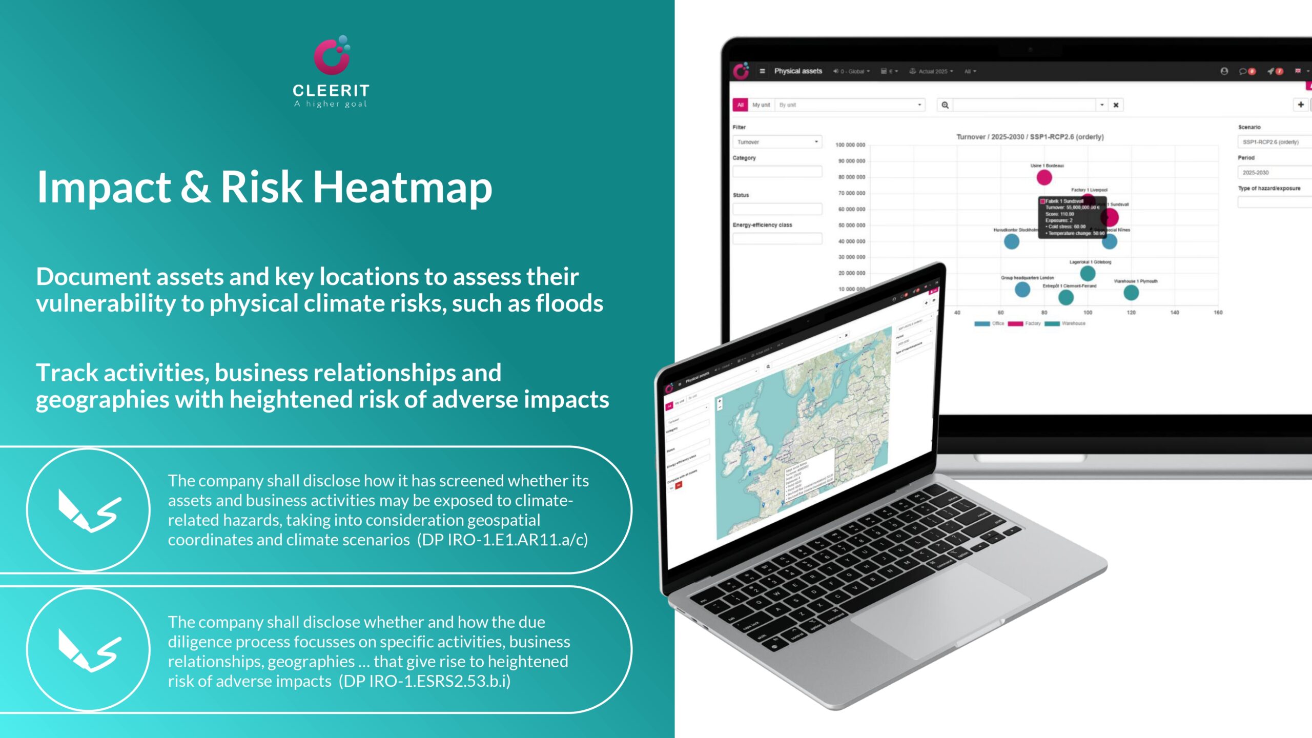 With its science-based solution and holistic approach, Cleerit ESG is uniquely positioned to help companies meet these challenges, and connect people, planet and profit at the heart of business strategy and decisions.