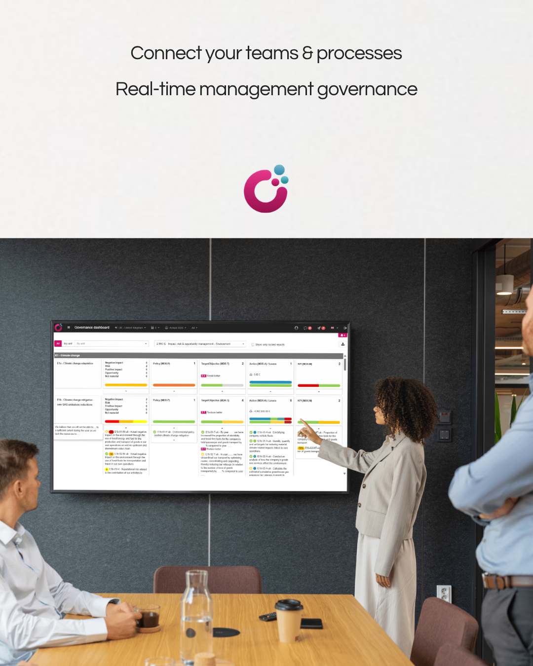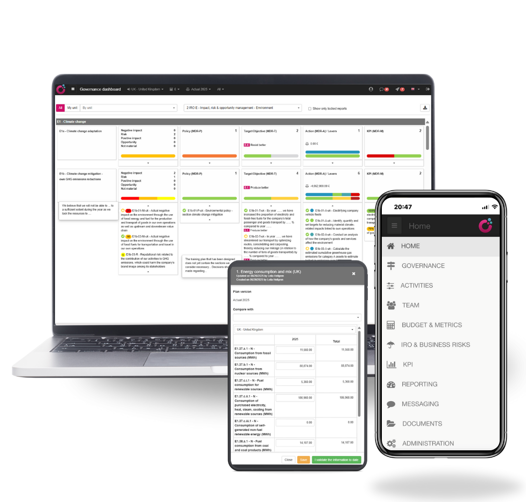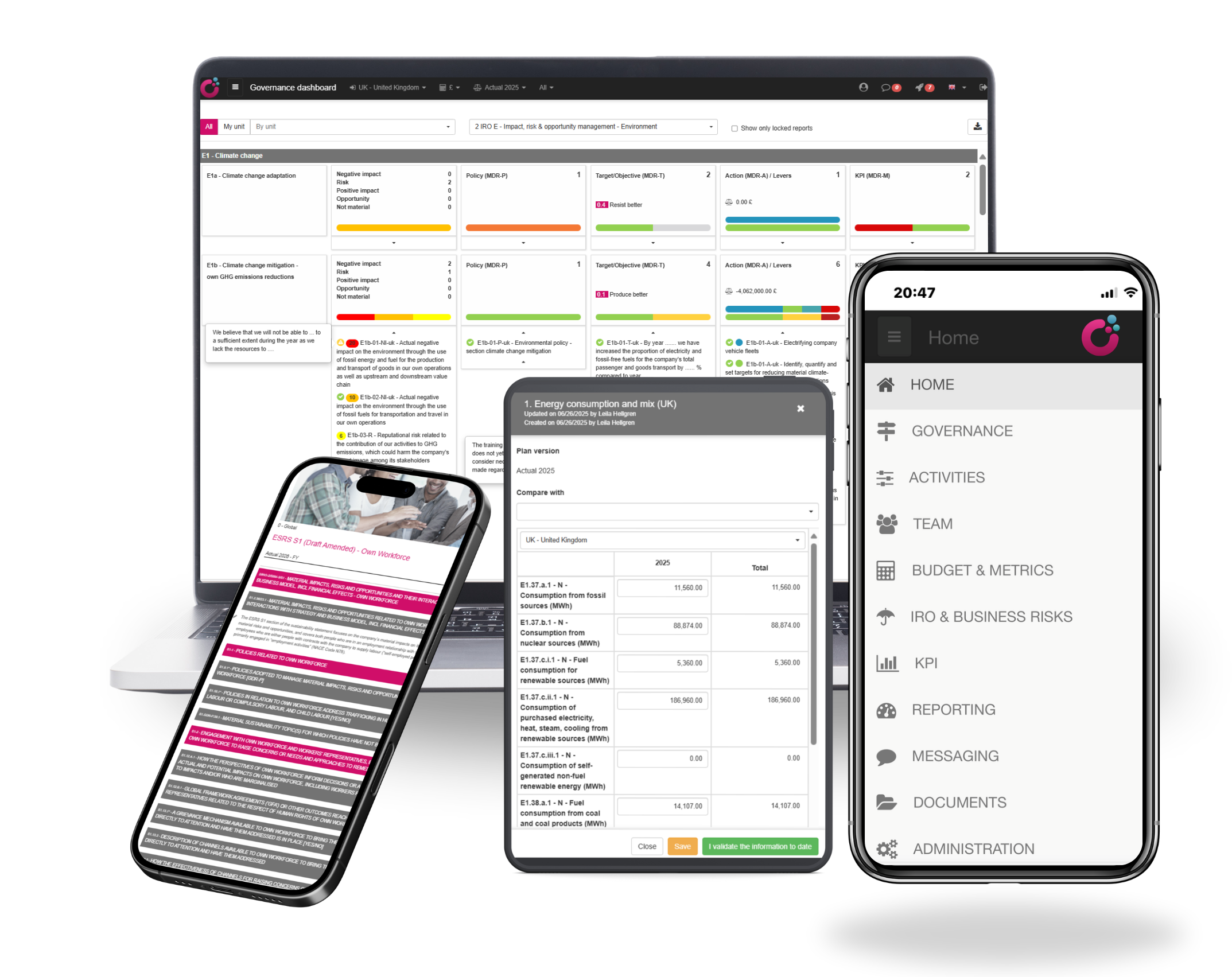 Ensure ESRS compliance and IFRS-SS & GRI interoperability by structuring your ESG strategy, processes & data, with built-in audit trail and guidance