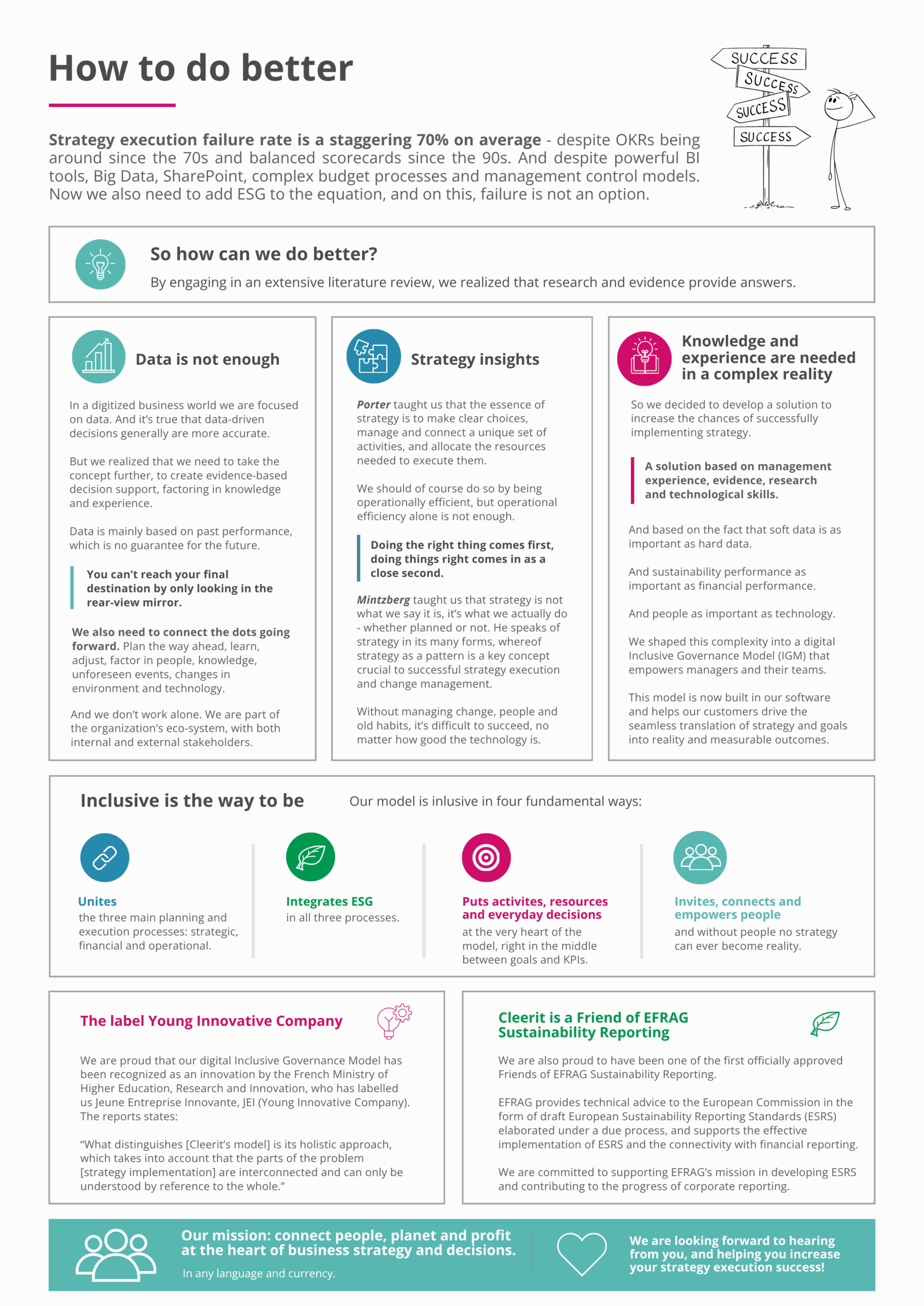 Cleerit provides your team with the clarity needed to drive everyday performance and turn your strategies into reality – while contributing to an inclusive and sustainable future
