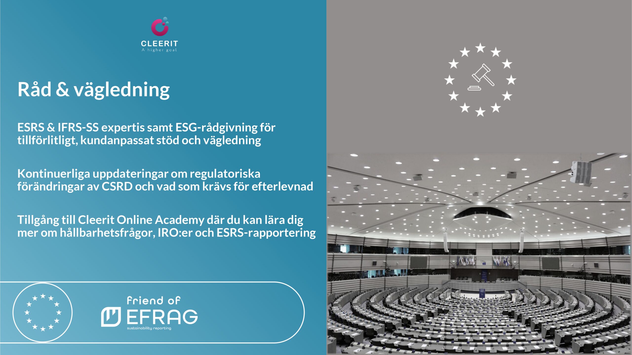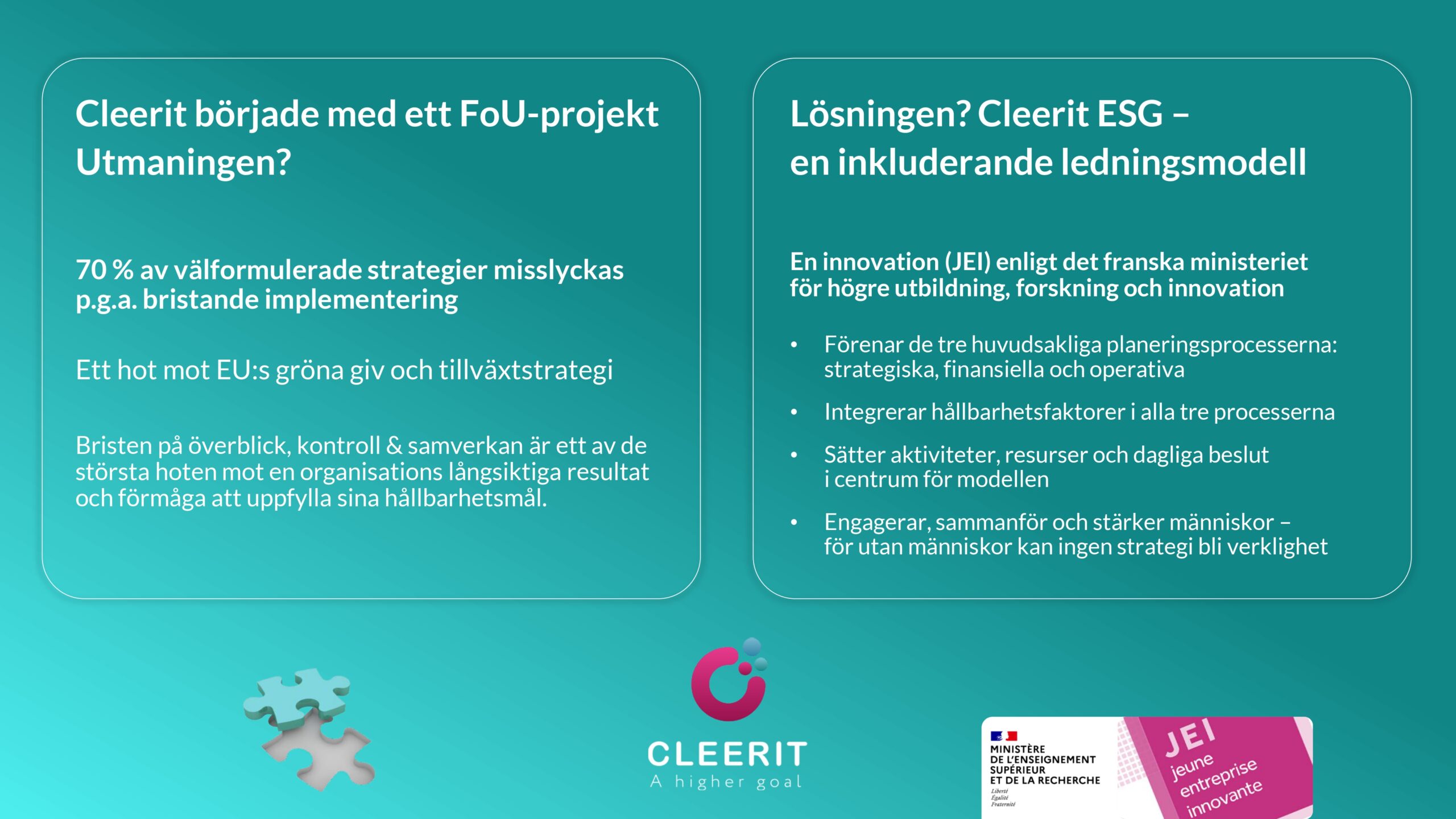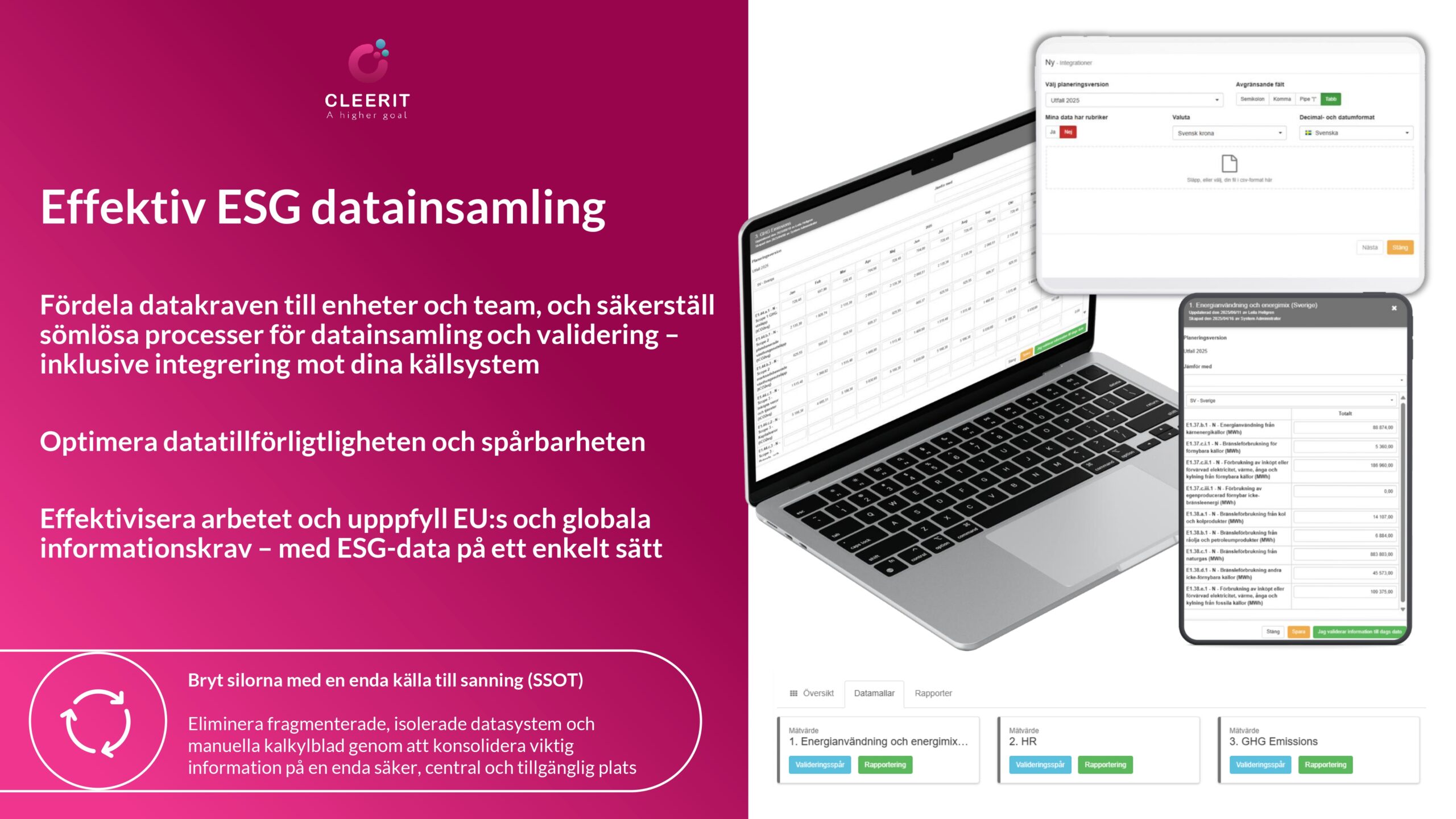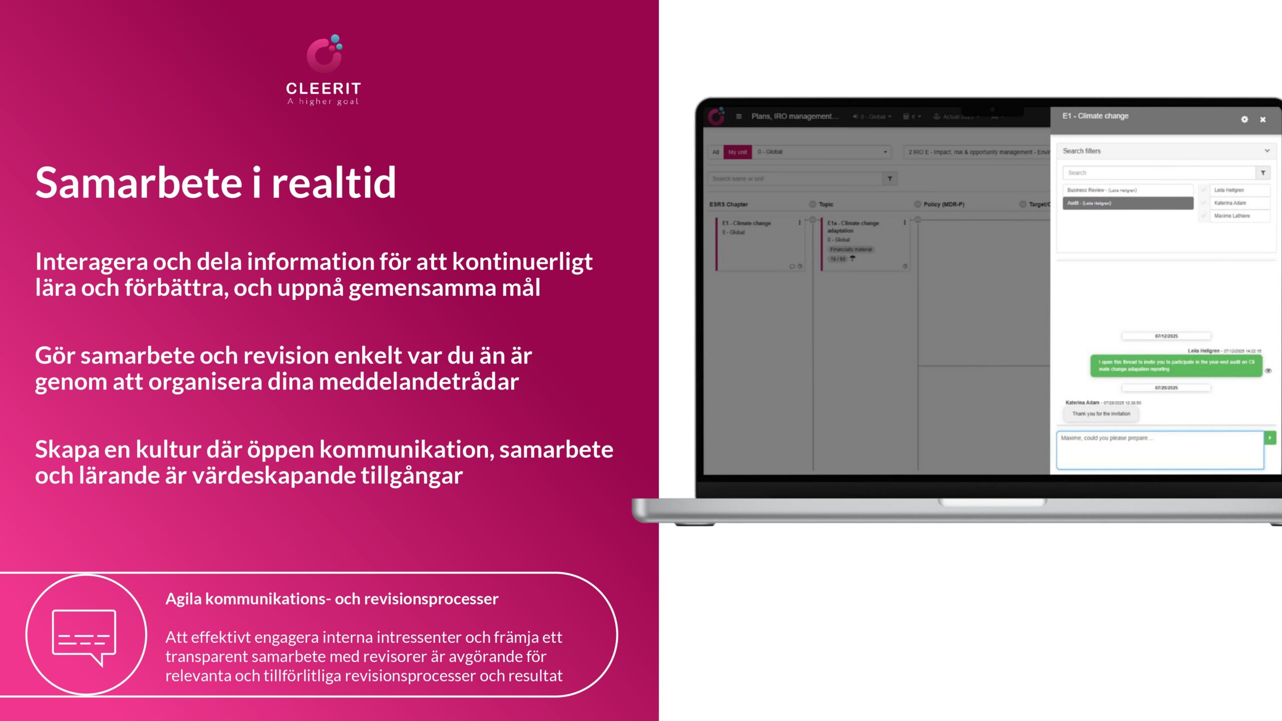 Med en vetenskapsbaserad lösning och helhetssyn är Cleerit ESG unikt positionerat för att hjälpa företag att möta dessa utmaningar, och koppla samman människor, planeten och resultat i centrum för strategiska beslut.