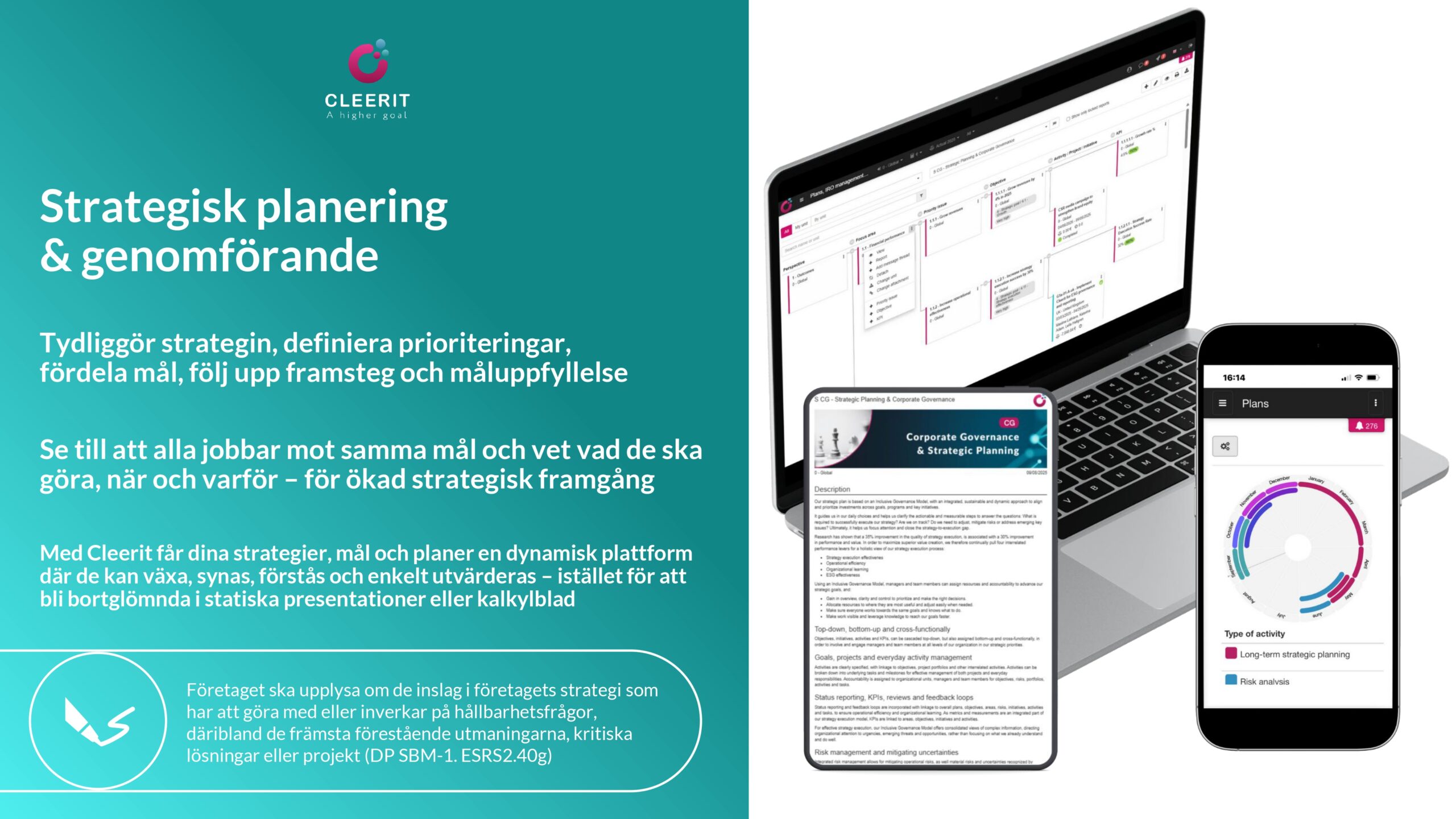 Tydliggör och genomför din hållbarhetsstrategi, integrera den i kärnverksamheten, och få överblick och kontroll för att prioritera och fatta rätt beslut