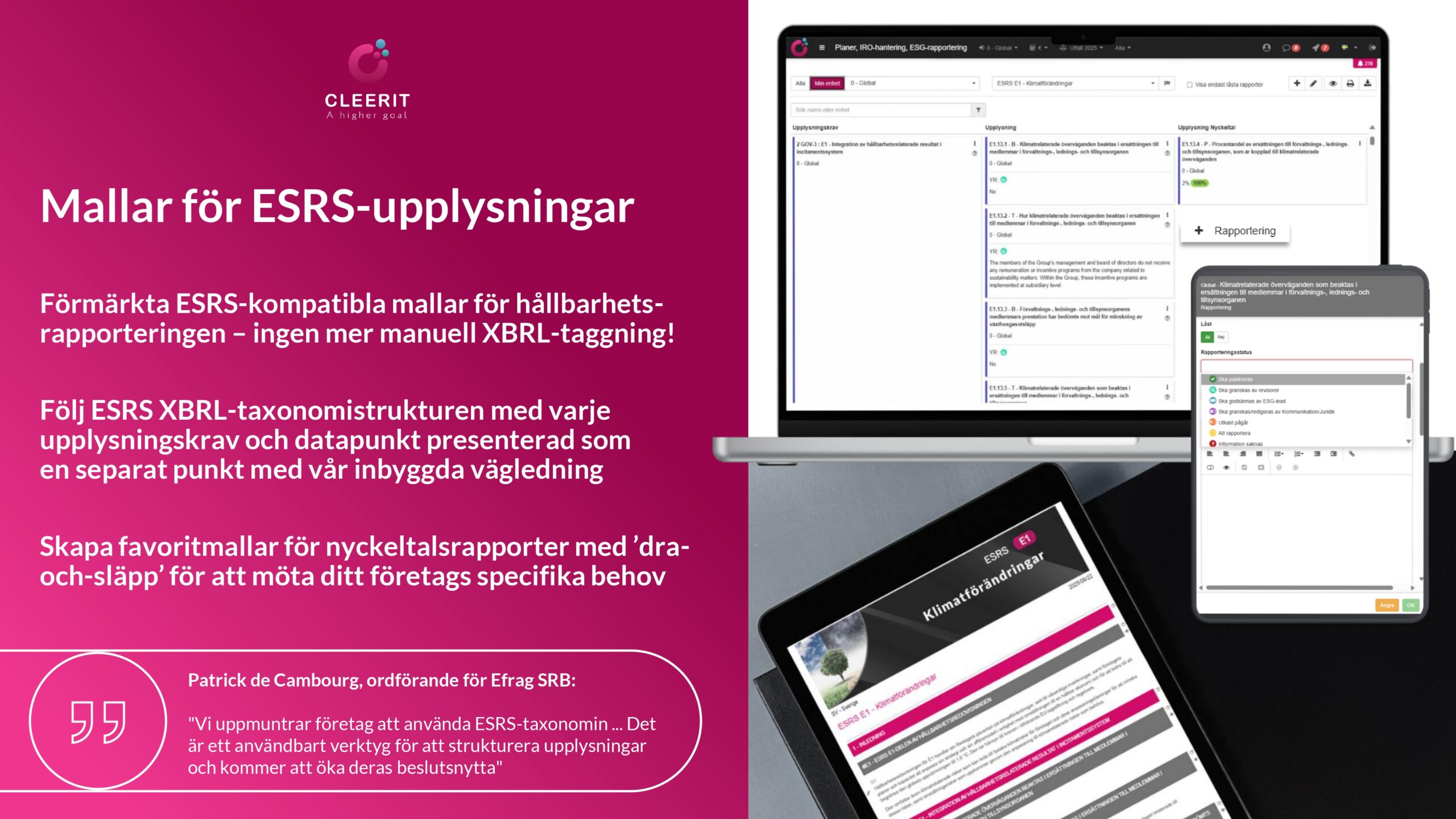 Stärk organisationens mognad inom både rapportering & hantering av hållbarhetsfrågor, bli revisionsredo på nolltid och ta ledningen i CSRD-rapporteringen
